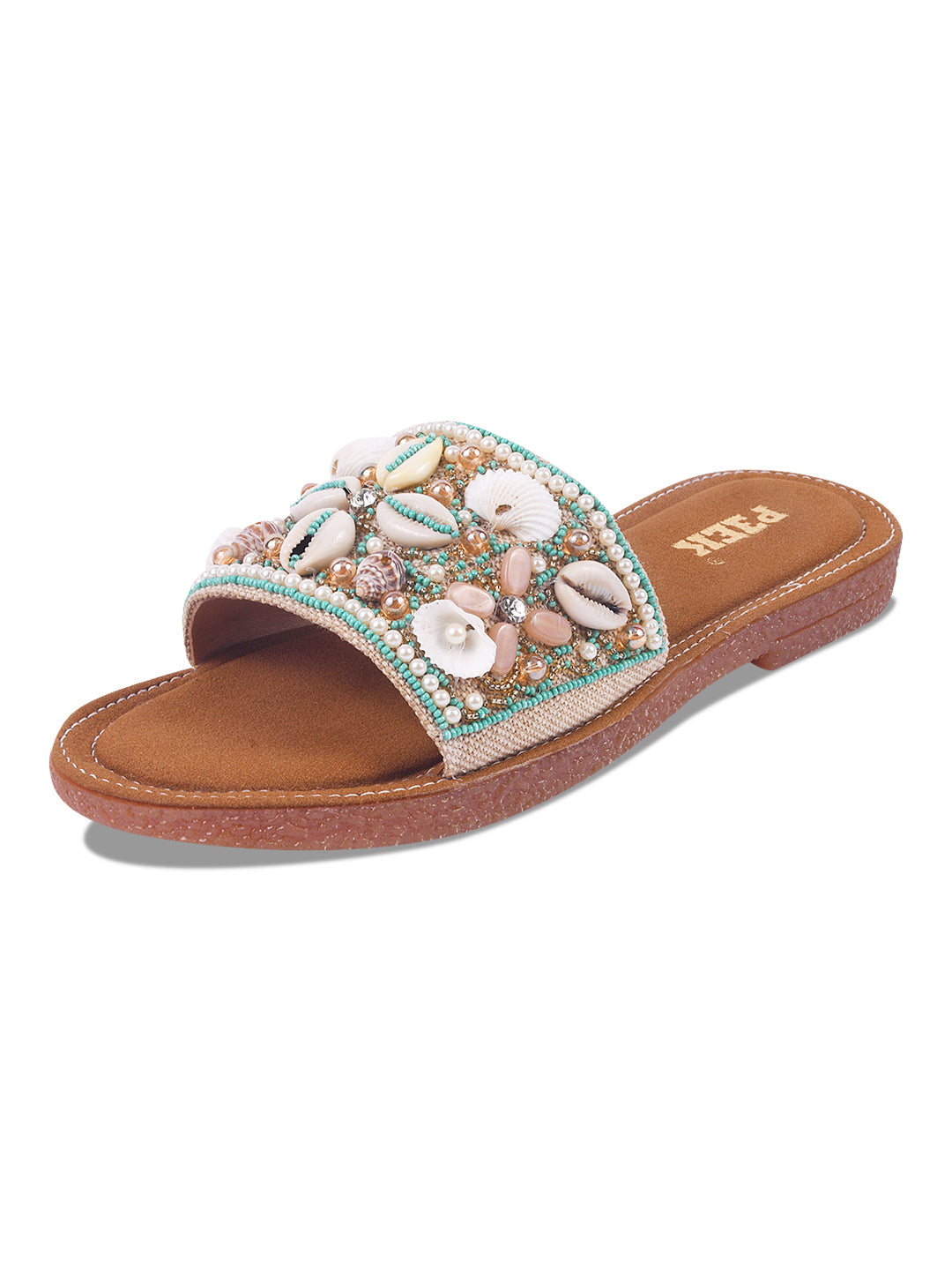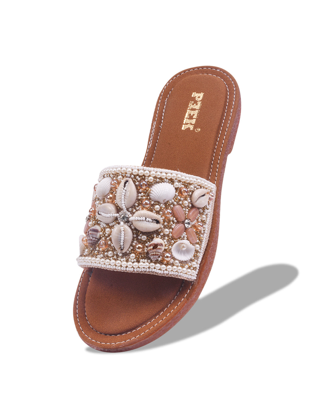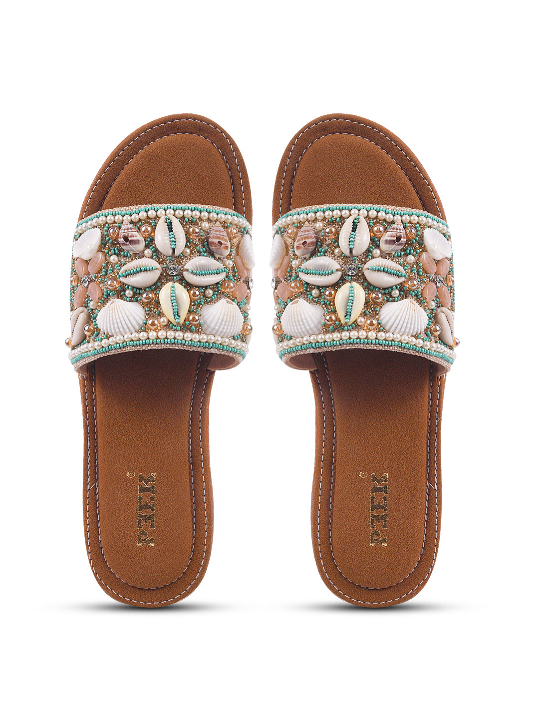 Stylish Handcrafted Flats with Shells, Beads & Stones